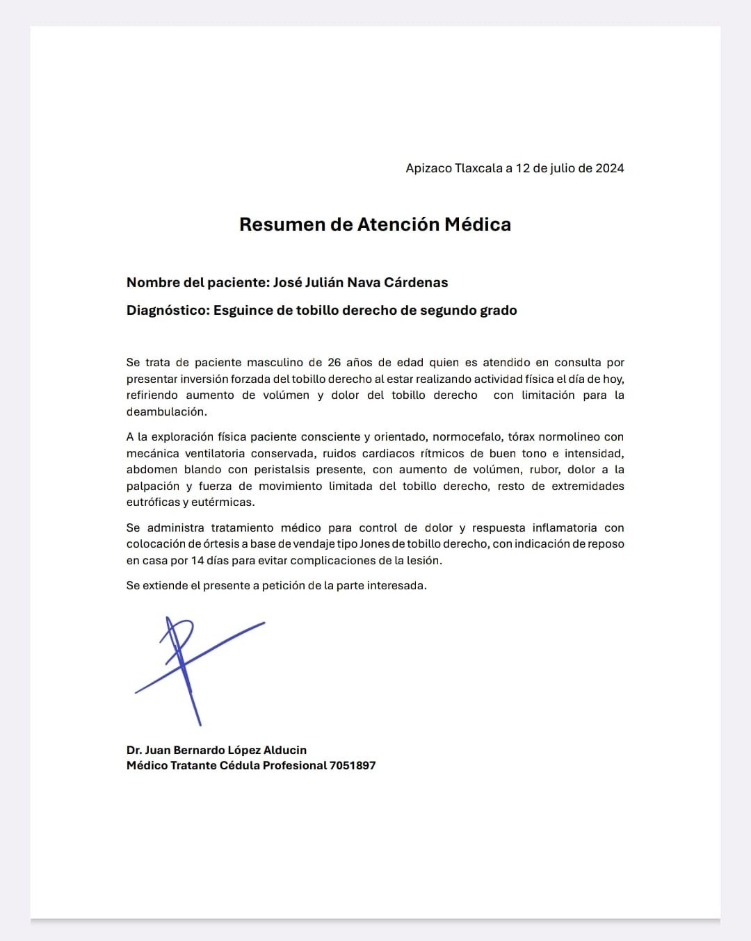 Se adjunta el parte médico del diestro José Nava