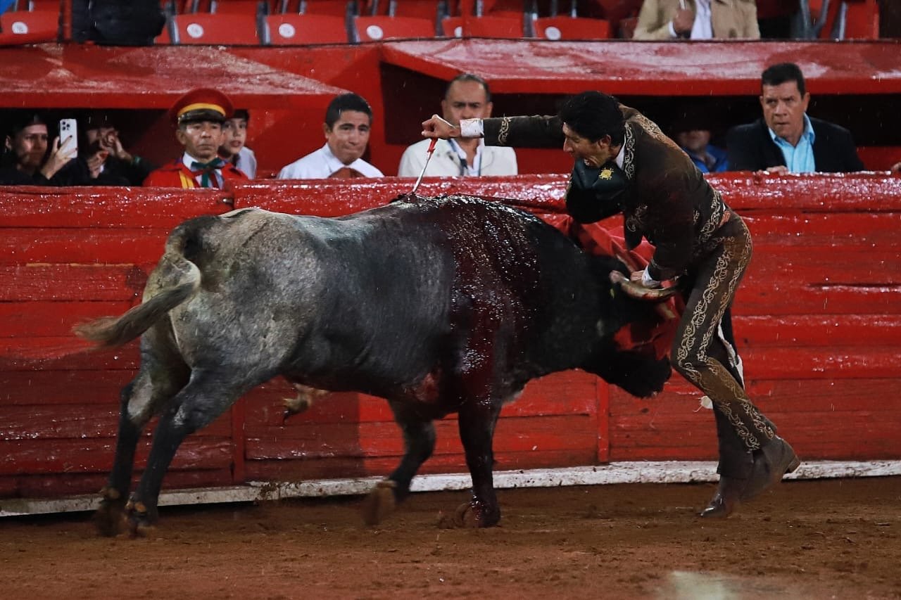Lamentablemente la lluvia ya no le permitió tener continuidad y luego el toro fue cambiando de lidia. Desafortunadamente pinchó con lo que desdibujó su labor y le sonaron un aviso.