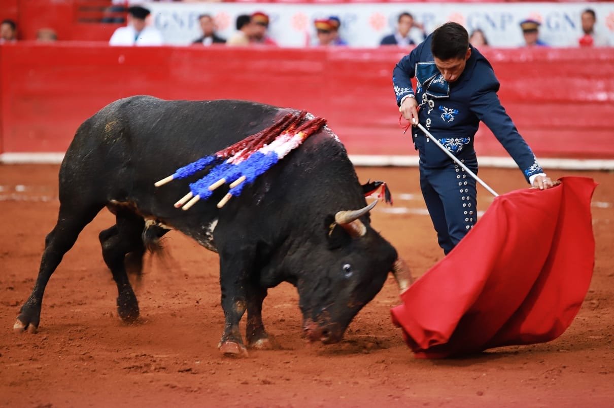 En el final de faena, el ejemplar le echó mano al hacer un quite por bernardinas, el cual fue aparatoso y recibió la asistencia de las cuadrillas, quienes lo llevaron rumbo a la enfermería, para segundos después salir por su propio pie y tomar la espada.