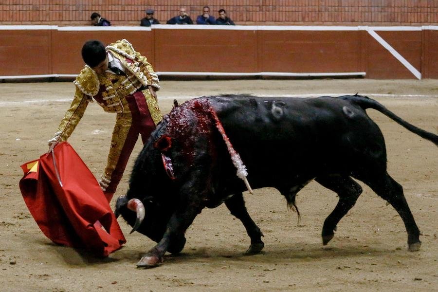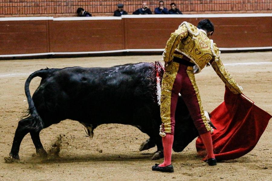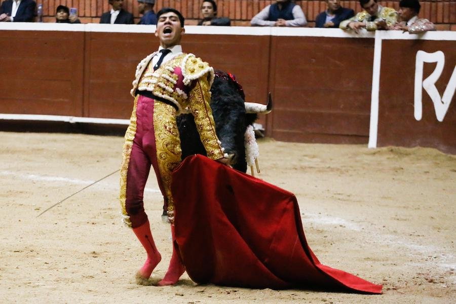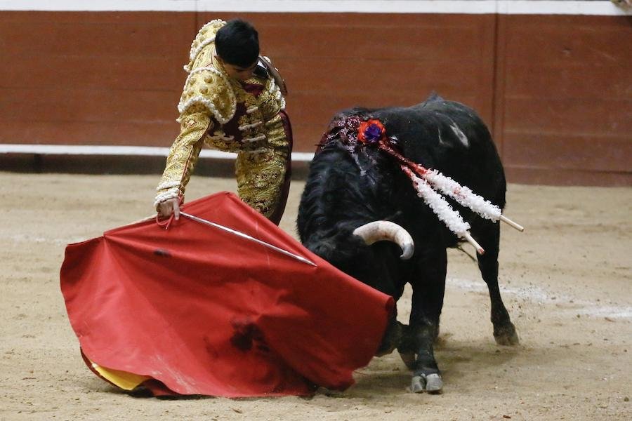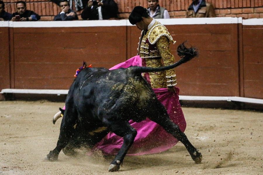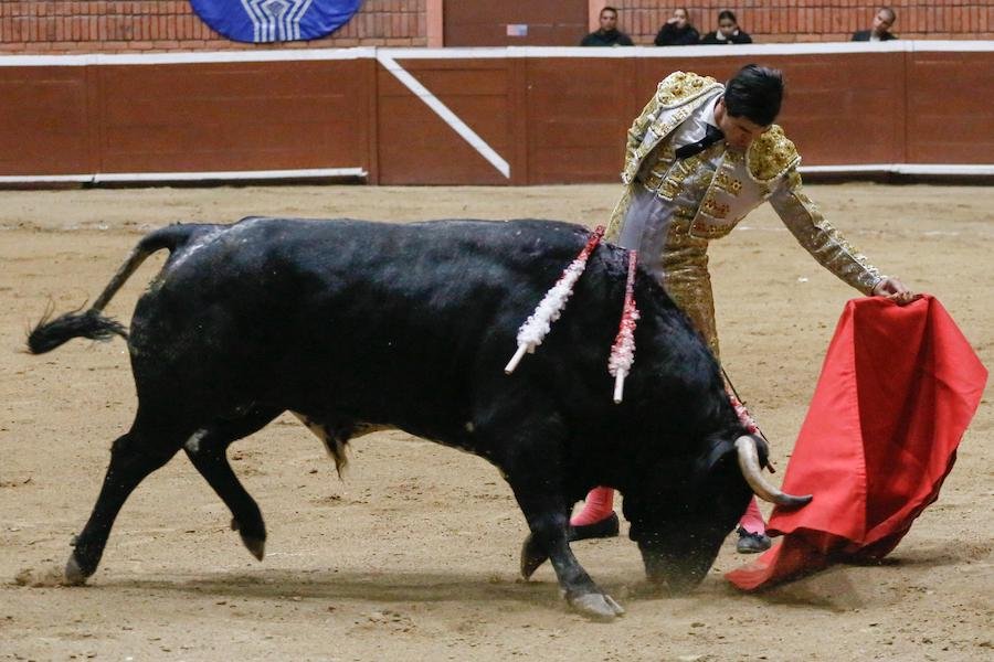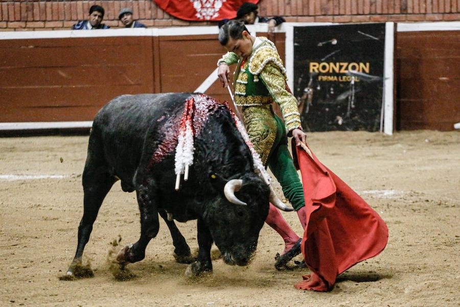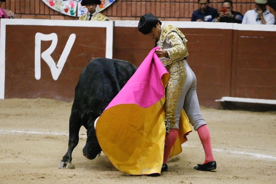 El becerrista Santiago Ochoa lidió un becerro de San Maximiano, ante el cual, mostró los conocimientos que adquirió los meses recientes durante su estancia en una escuela taurina española.