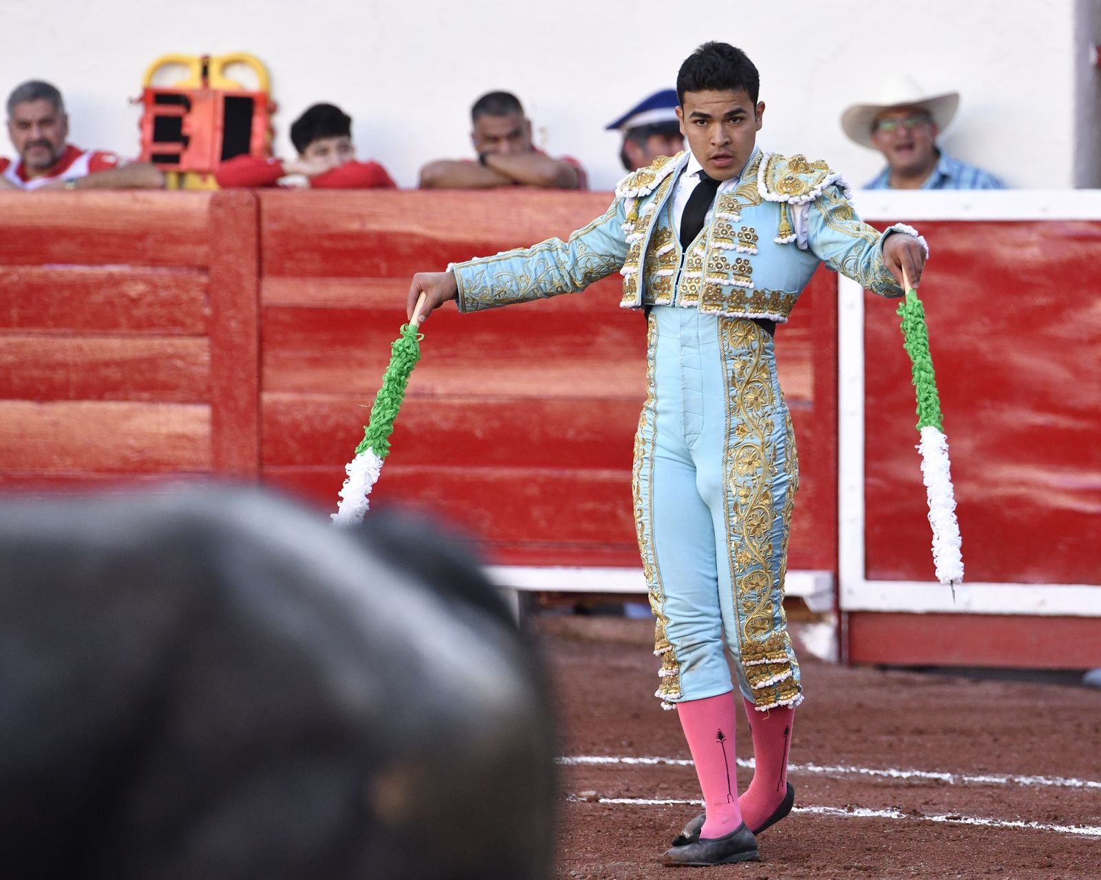 En el tercer novillo de la tarde de nombre “Anestesiólogo” no. 71 de 350 kg el novillero norteño Manolo González, estuvo esmerado en banderillas, con la muleta realizó una faena interesante de entrega, escuchando la música en las alturas y palmas del respetable.