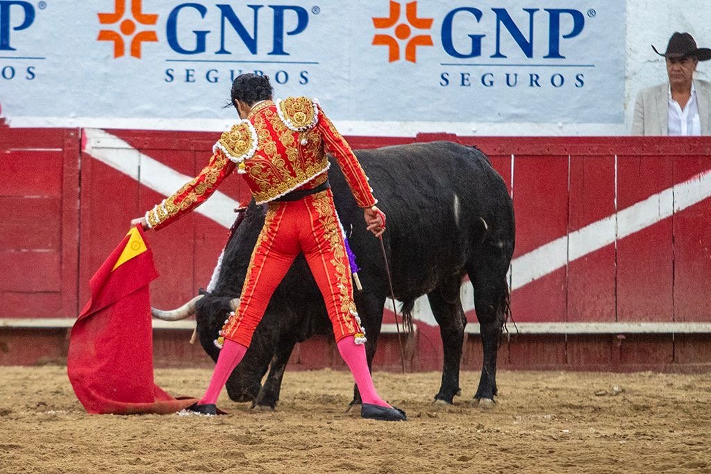 El espada de Querétaro empezó entonces a robarle embestidas al astado, una serie de naturales y “Valeroso”, rodó por la arena… más dudas para Diego.