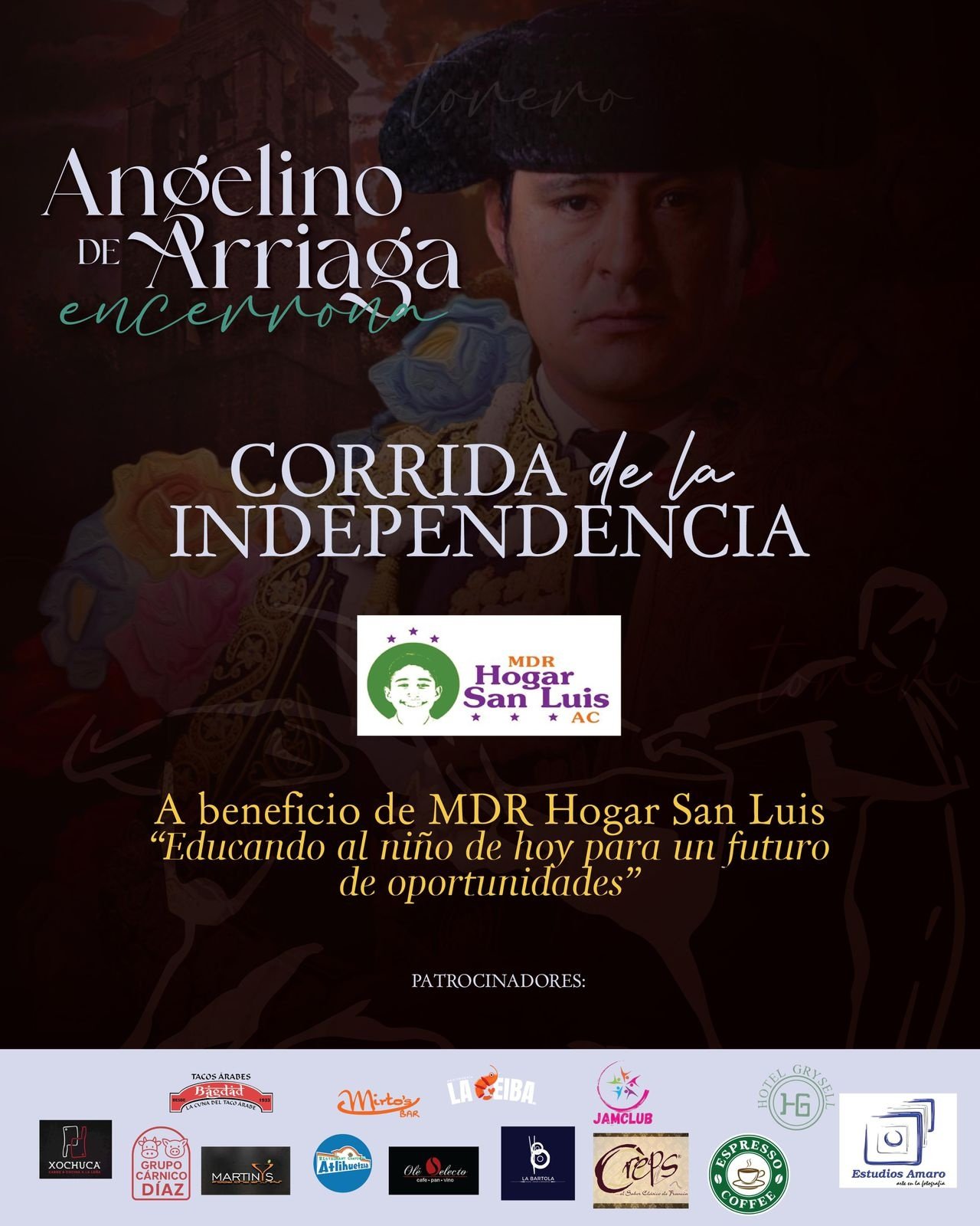 En el marco de las celebraciones patrias, el diestro Angelino de Arriaga protagonizará una encerrona histórica en Tlaxcala, para lidiar en solitario seis astados de reconocidas ganaderías mexicanas. El evento, tiene un propósito solidario al destinarse los beneficios al “MDR Hogar San Luis” bajo el lema "Educando al niño de hoy para un futuro de oportunidades".