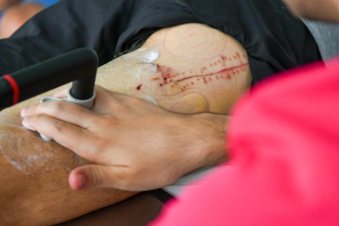 "Y en cuanto a la terapia, en la clínica de Juan Carlos Ciriza, que es un gran profesional y un buen amigo, me paso entre seis y siete horas diarias, sometido a distintos procesos con la finalidad de reparar los destrozos musculares. Los ejercicios son cansados porque no tengo tono muscular y debo comenzar a construirlo nuevamente para poder afianzar bien la extremidad, sobre todo la más afectada", comentó Bruno Aloi.