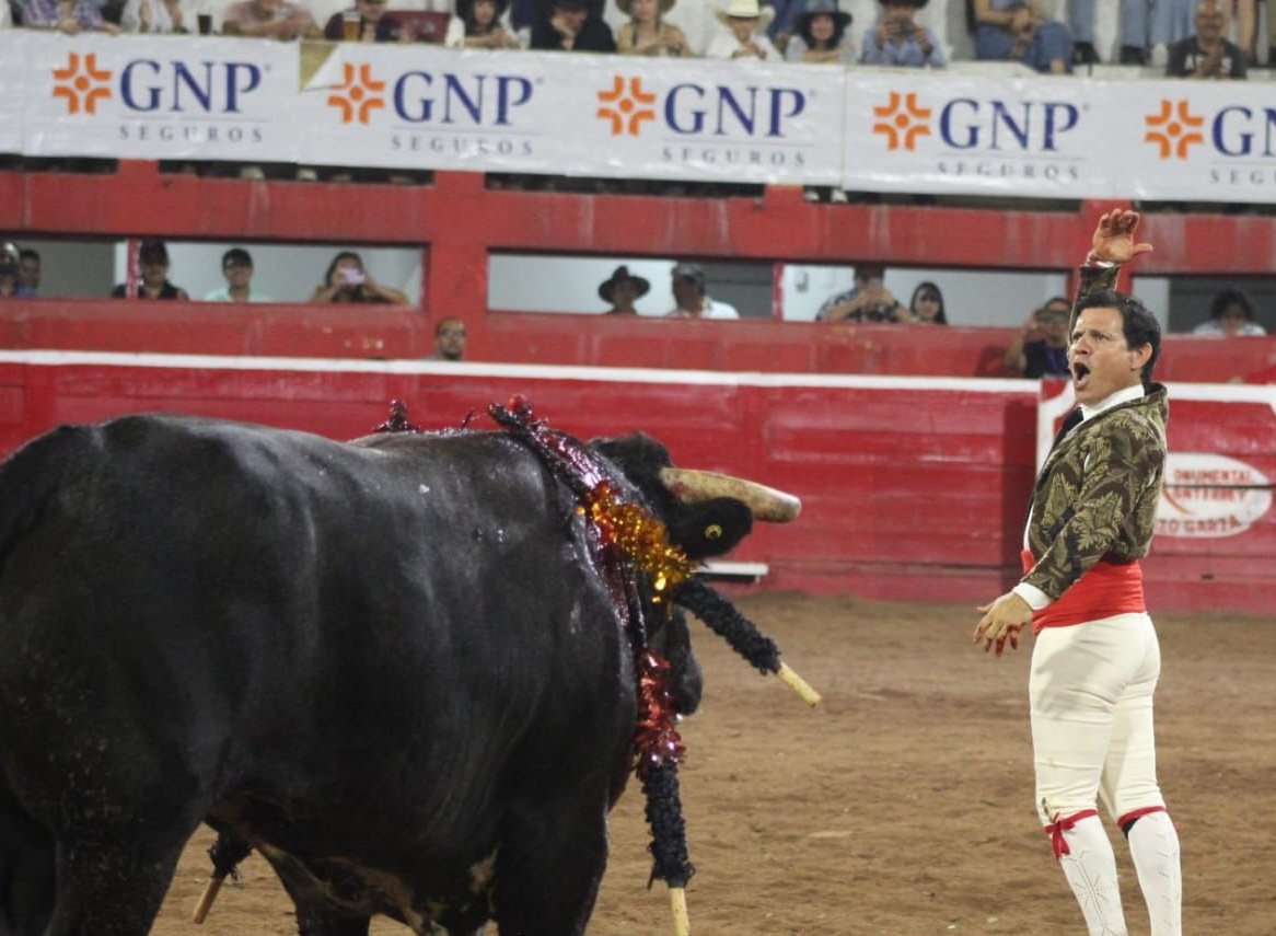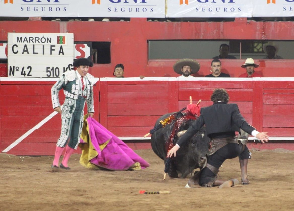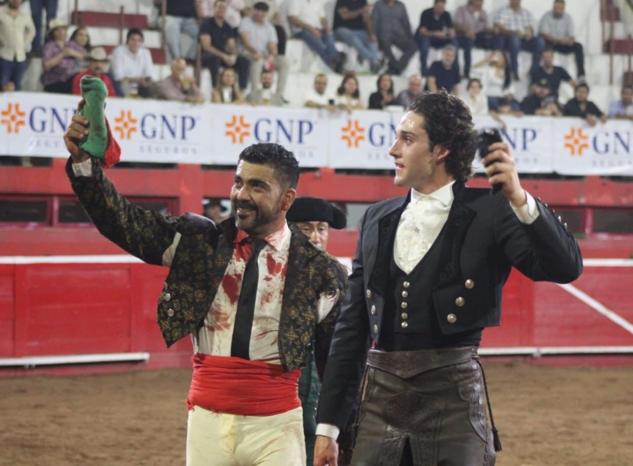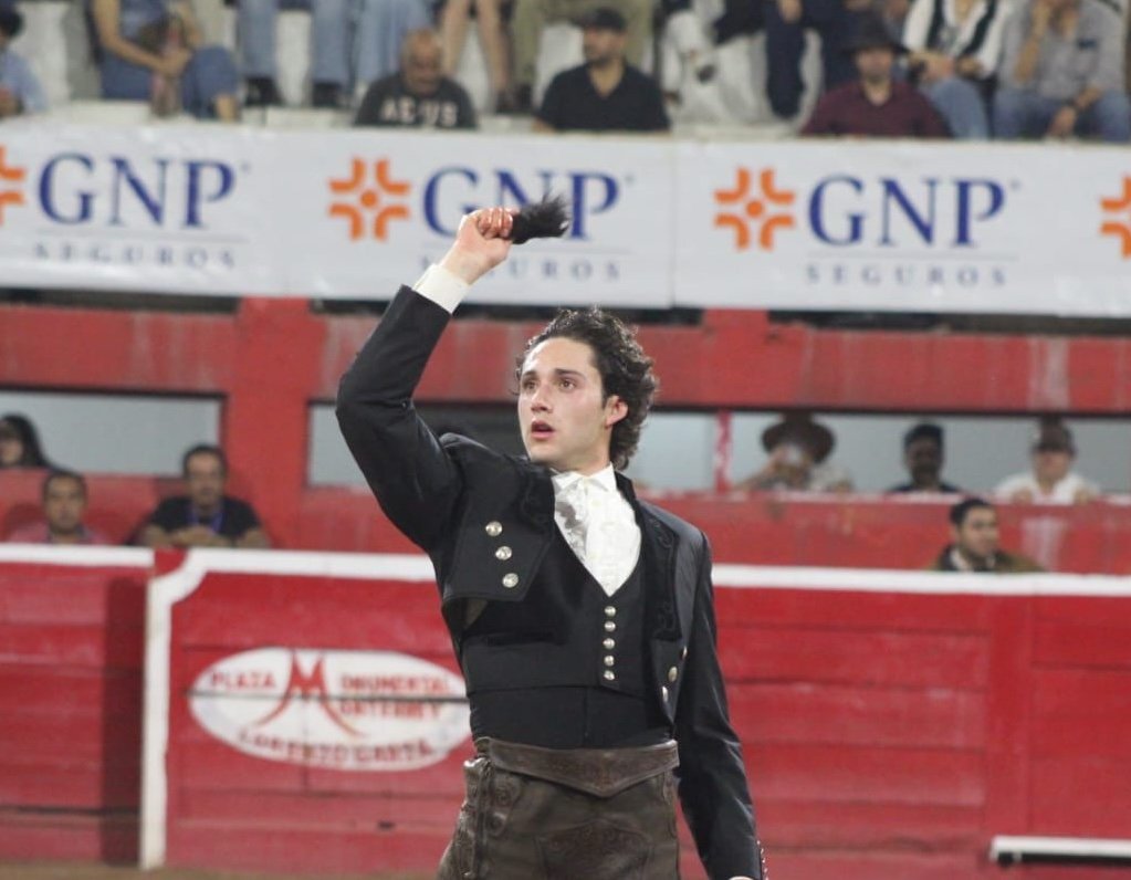 Tarik Othon corta una oreja a su primer toro, de nombre Califa" de 510 kilos de Marrón. con su segundo corta oreja a su segundo toro, de nombre "Norteño" de 500 kilos y con ello triunfa en el festejo al cortar su segunda peluda para llevarse La Puerta Grande en la Monumental Lorenzo Garza.