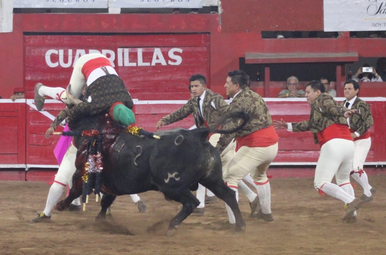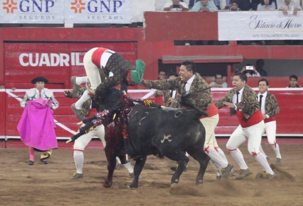 Destacada actuación del grupo de Forcados que encabezados por Rene Tirado hicieron una gran pega a “Califa ” No 42 el cual dominaron llevandose fuerte ovación.