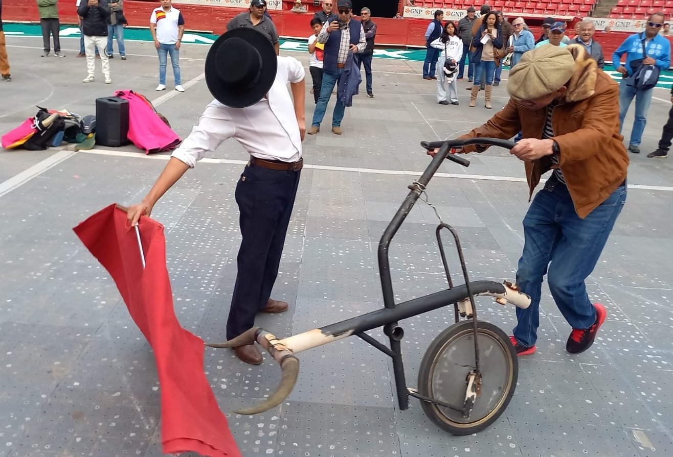 El evento llegó a su clímax cuando sacaron del recuerdo el carretón para embestir entre los aficionados taurinos con el toreo de salón. Así niños, mujeres, jóvenes y adultos mayores, encabezados por los matadores Gil, Cepeda, Curro Plaza y Doddoli fueron los directores de lidia.