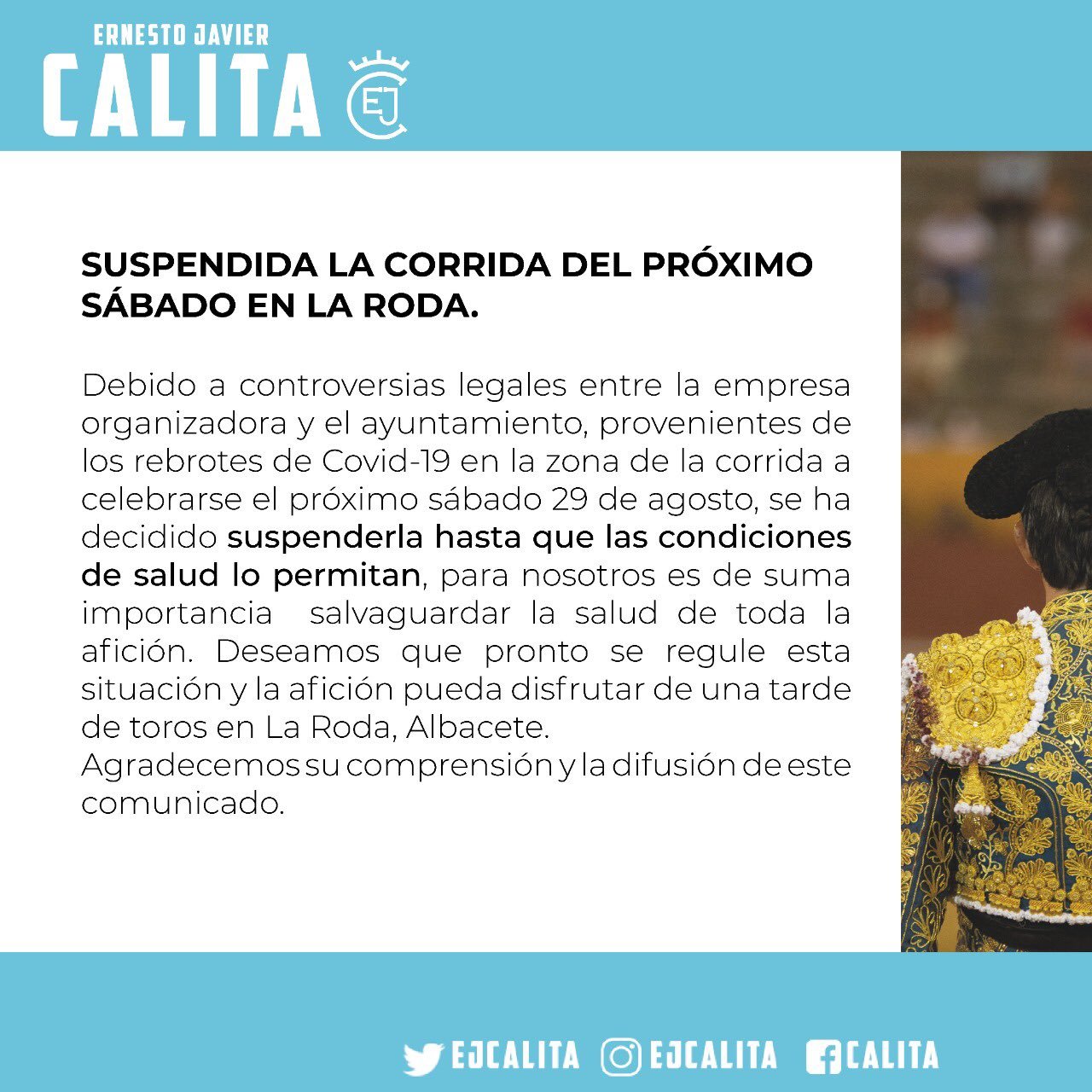FINALMENTE HASTA MARZO DEL 2021 LA CORRIDA EN LAS MONUMENTAL DE LAS PLAYAS.