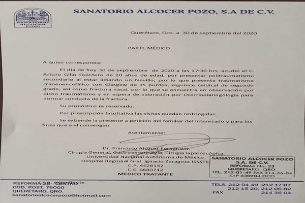 Sufre Lesión Arturo Gilio en el Campo Bravo