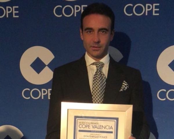Enrique Ponce recoge el Premio Popular de Cope Valencia | 15/6/2018 |