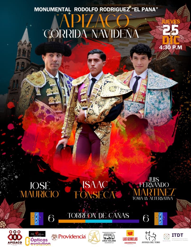 La empresa anuncia para el 25 de Diciembre a las 4:30 pm. La alternativa del torero Tlaxcalteca Luis Fernando Martínez, el padrino será el matador José Mauricio y como testigo el diestro Isaac Fonseca para lidiar un encierro de Torreón de Cañas.
