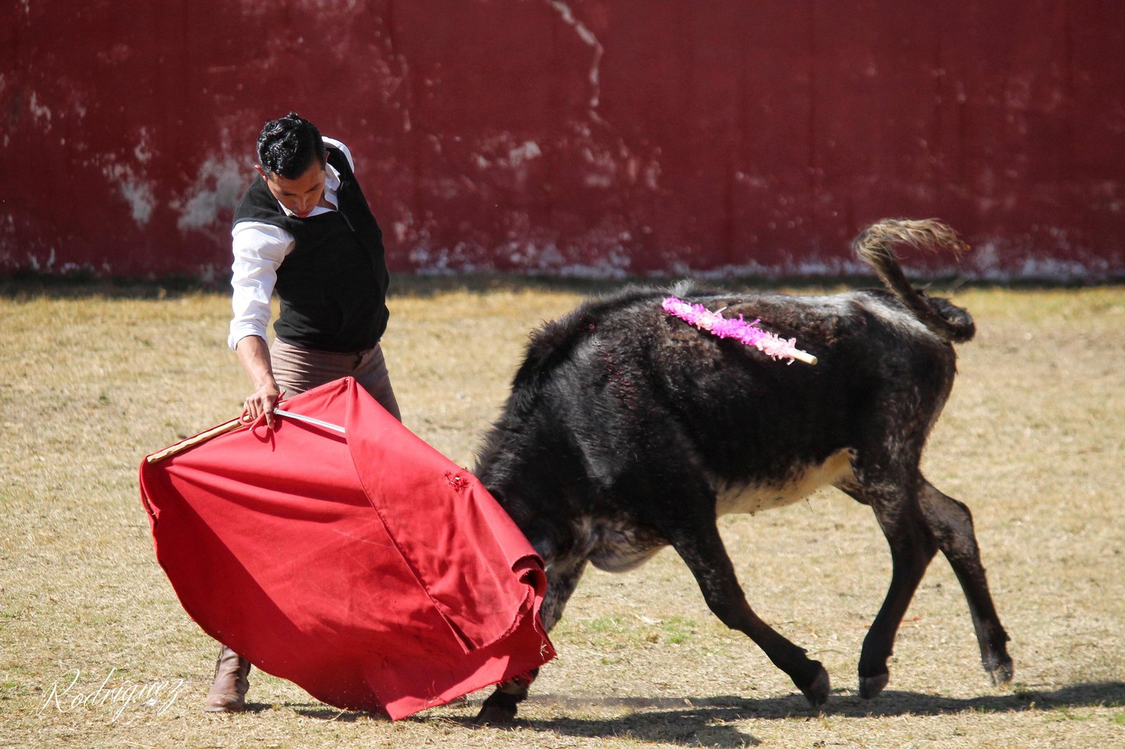 Finalmente saltó al ruedo una becerra colorada, ojinegra, bragada de La Gasca. A cargo de su lidia estuvo el novillero Jesús Sosa. Mostró calidad en su embestida, con mucha clase acudió a los naturales que Sosa fue estructurando.