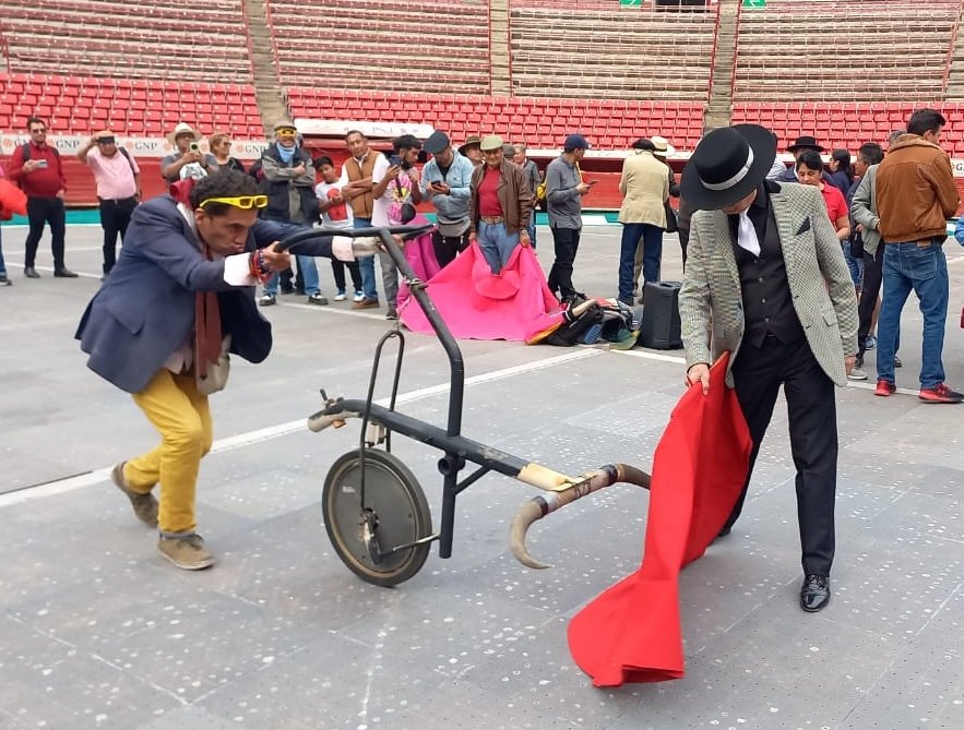 El evento llegó a su clímax cuando sacaron del recuerdo el carretón para embestir entre los aficionados taurinos con el toreo de salón. Así niños, mujeres, jóvenes y adultos mayores, encabezados por los matadores Gil, Cepeda, Curro Plaza y Doddoli fueron los directores de lidia.