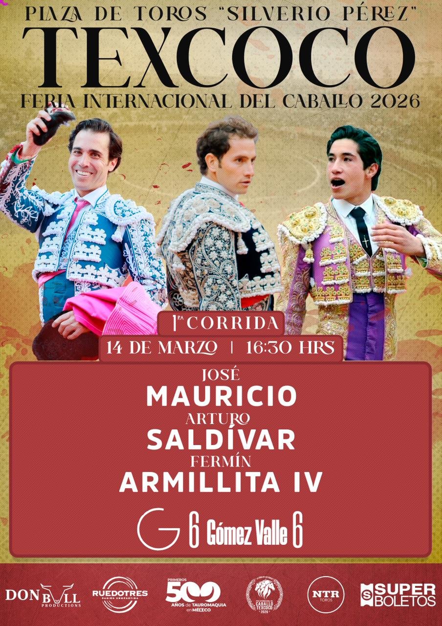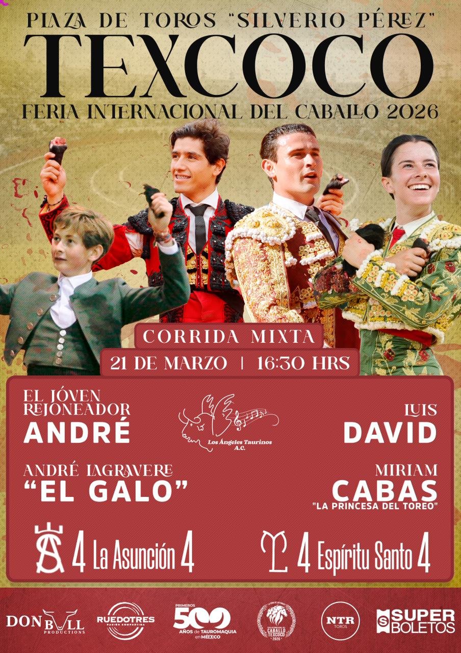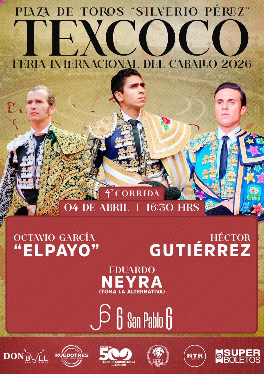 A nombre de la empresa Don Bull Productions, el matador Manolo Mejía dio a conocer las combinaciones para los cinco carteles taurinos que se llevarán a cabo en la plaza Silverio Pérez de Texcoco, Edomex., en el marco de la Feria Internacional del Caballo 2026.