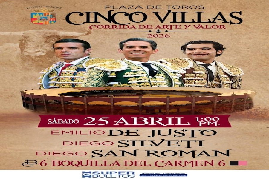 El cartel está encabezado por la figura del toreo español Emilio de Justo, quien se presentará en la Plaza de Toros Cinco Villas, uno de los toreros más importantes del momento y referente del toreo mundial.