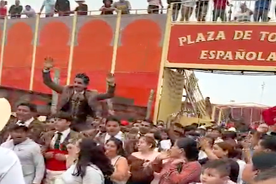 Tras hablar, subió a sus caballos para torear y al final dio muerte al segundo ejemplar y cortó dos orejas y un rabo, que le significó salir a hombros en medio del clamor popular, pero sobre todo el resguardo de la afición que se había dado cita en al menos unos 5 mil espectadores.