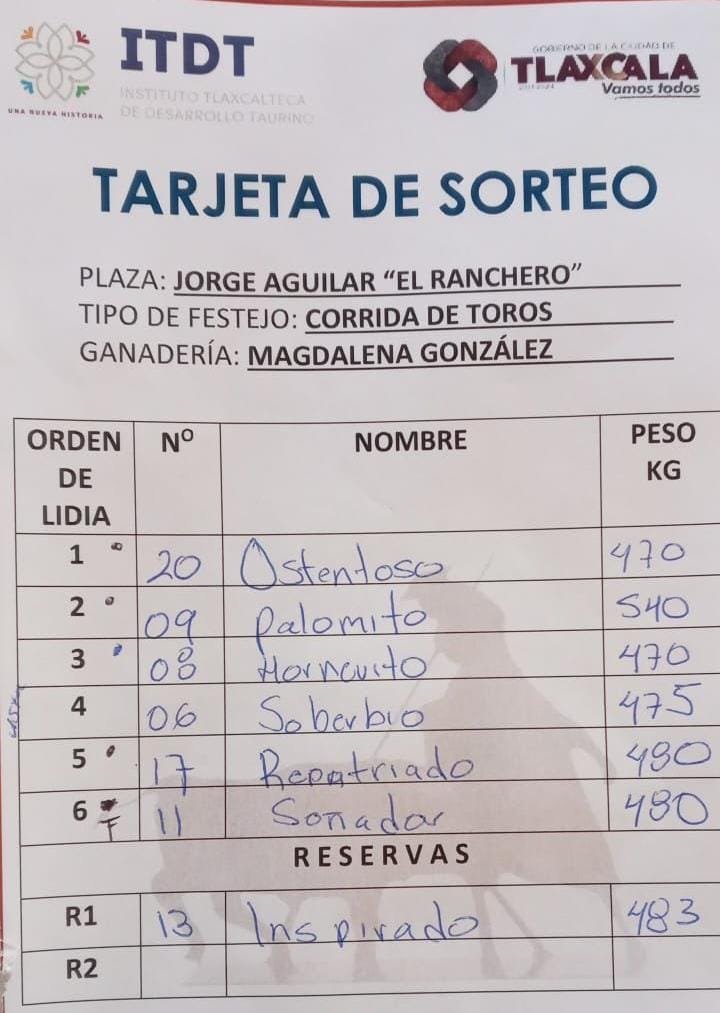 Corrida Tlaxcala, toros de Magdalena González